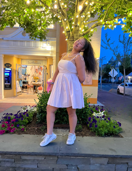Using my bias tape maker, I took two very long and skinny strips of fabric and ironed them before using a finishing zig-zag stitch to make them stay. Then, I cut them each in half, finished the cut edge, and sewed each half onto the front and back of the bodice and then tied them into cute little bows on top.